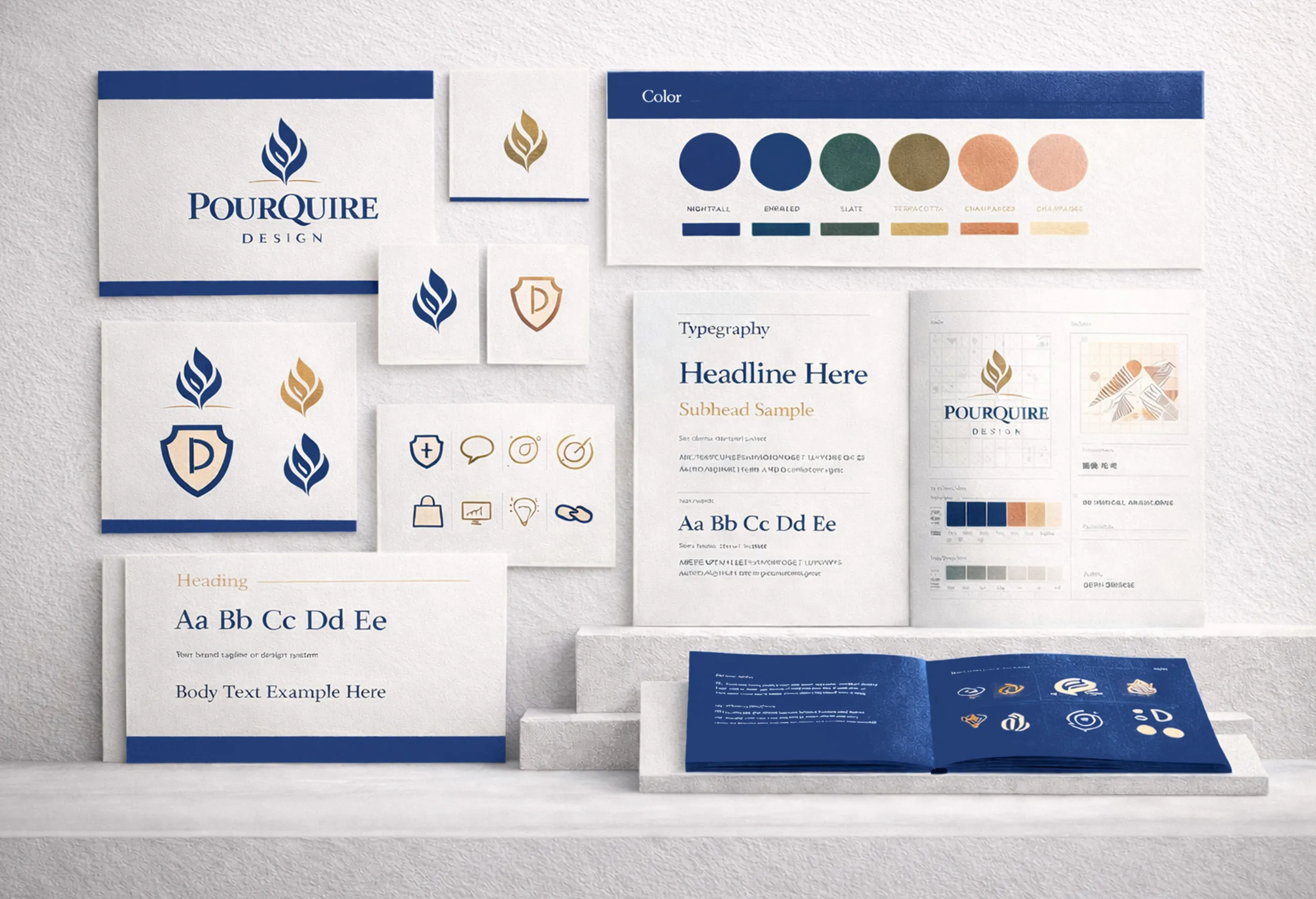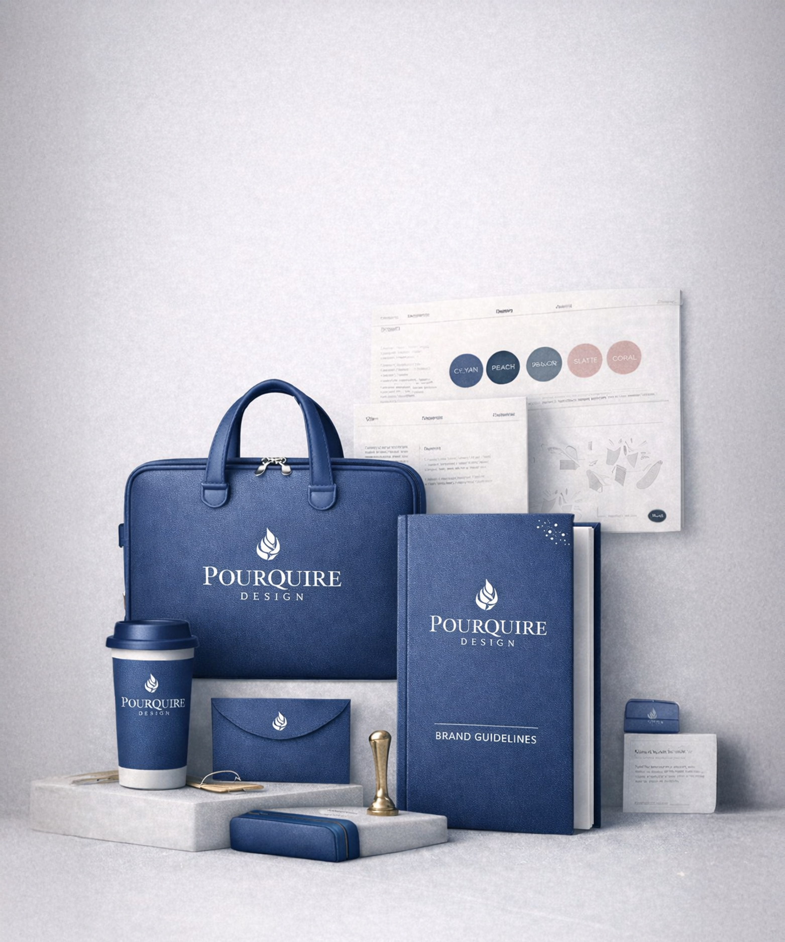 Logo systems, color palettes, typography and visual language designed for recognition and trust.