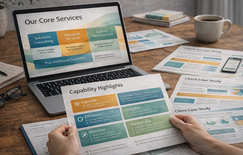 Structured presentations that clearly articulate services, processes and case studies.