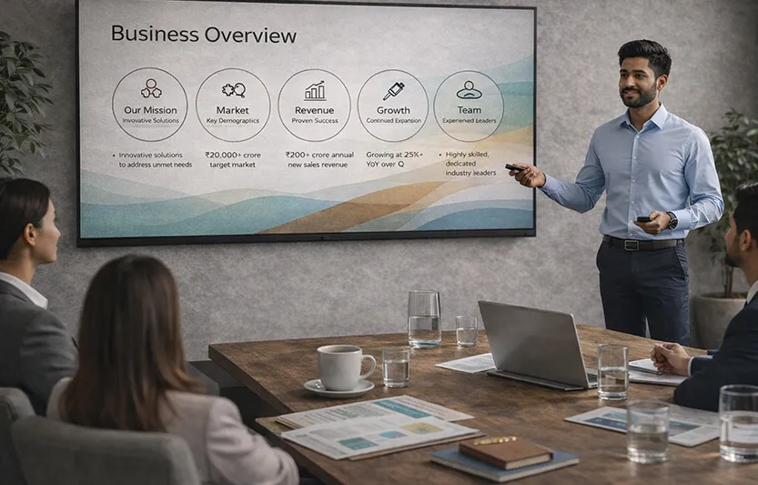 Brand360s supports brands in Chennai, across India and in Switzerland with premium presentation and pitch deck design. Our approach balances storytelling, visual clarity and global design quality, ensuring every deck performs in high-stakes environments.